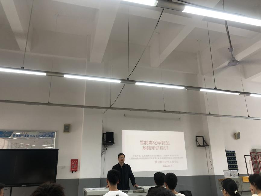 为强化学校易制毒化学品的安全管理工作,不断提高学生的安全意识及知识,2022年12月1日,太阳集团tcy8722开展了易制毒化学药品安全知识培训,本学院所有班委干部及学生代表参加了培训会议,培训由太阳集团tcy8722副院长孔新海主持。孔新海主要围绕易制毒化学品的概念和分类开展培训,并传达了易制毒化学品管理的法律依据以及安全管理责任制等内容。