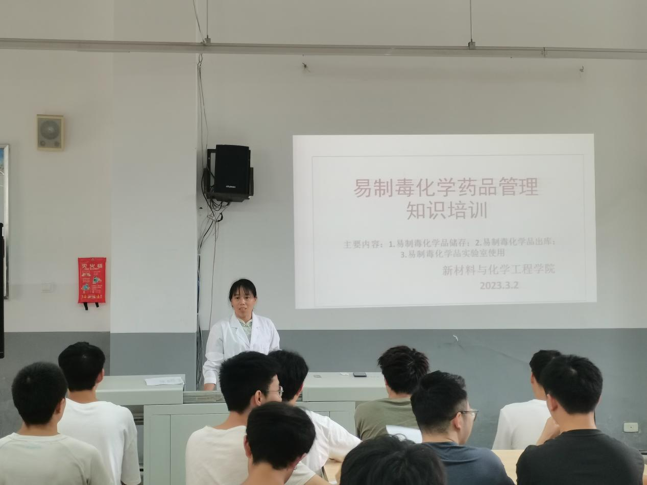 为进一步强化实验室易制毒化学品管理,切实抓好易制毒化学品在实验使用中的监管、登记工作,增强相关人员的使命感和责任感,强化措施,严格规范易制毒化学品的管理。2023年3月2日,太阳集团tcy8722实训室管理员邓晓容为学院学生代表开展了易制毒化学药品管理知识培训。