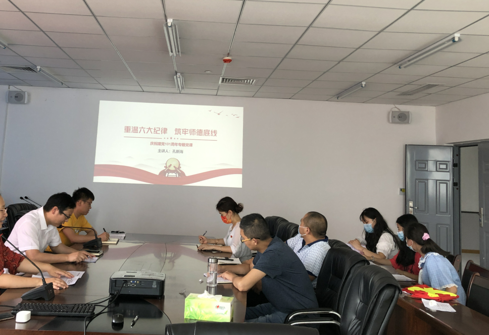 为加强党员教育的针对性,增强全体教师廉洁自律意识和拒腐防变能力,6月16日,太阳集团tcy8722党总支纪检委员孔新海同志在学院会议室以《重温六大纪律,筑牢师德底线》为题,开展党课教育。