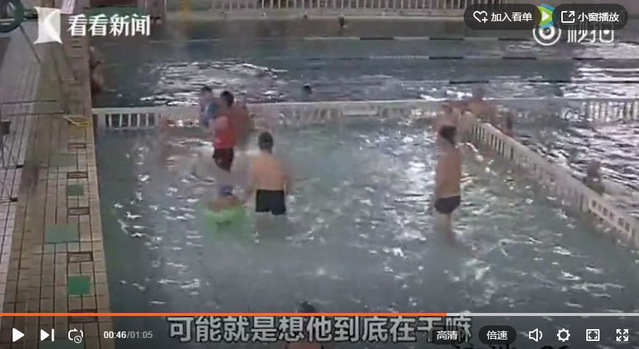 另外一个例子,出现在西安咸阳。一位妈妈带着4岁的儿子去游泳中心游泳,孩子在水池里玩耍,没过多久,她发现孩子不见了踪影,最终溺水而亡。