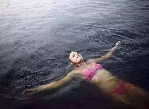 还有一种叫仰漂,屏住呼吸,头向后仰,放松肢体,双手双脚向两边,呈"大"字形摆开,呼吸时尽量用嘴吸气,用鼻呼气,千万别试图将整个头伸出水面,这是一个致命的错误。